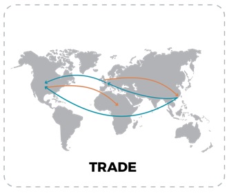 - Trade: Trade represents the exchange of all goods along the supply chain (between all stages) among